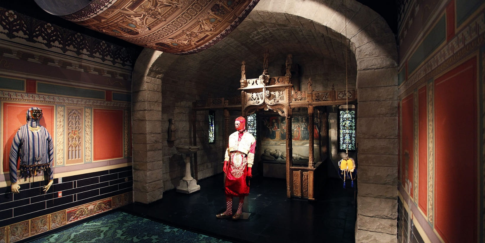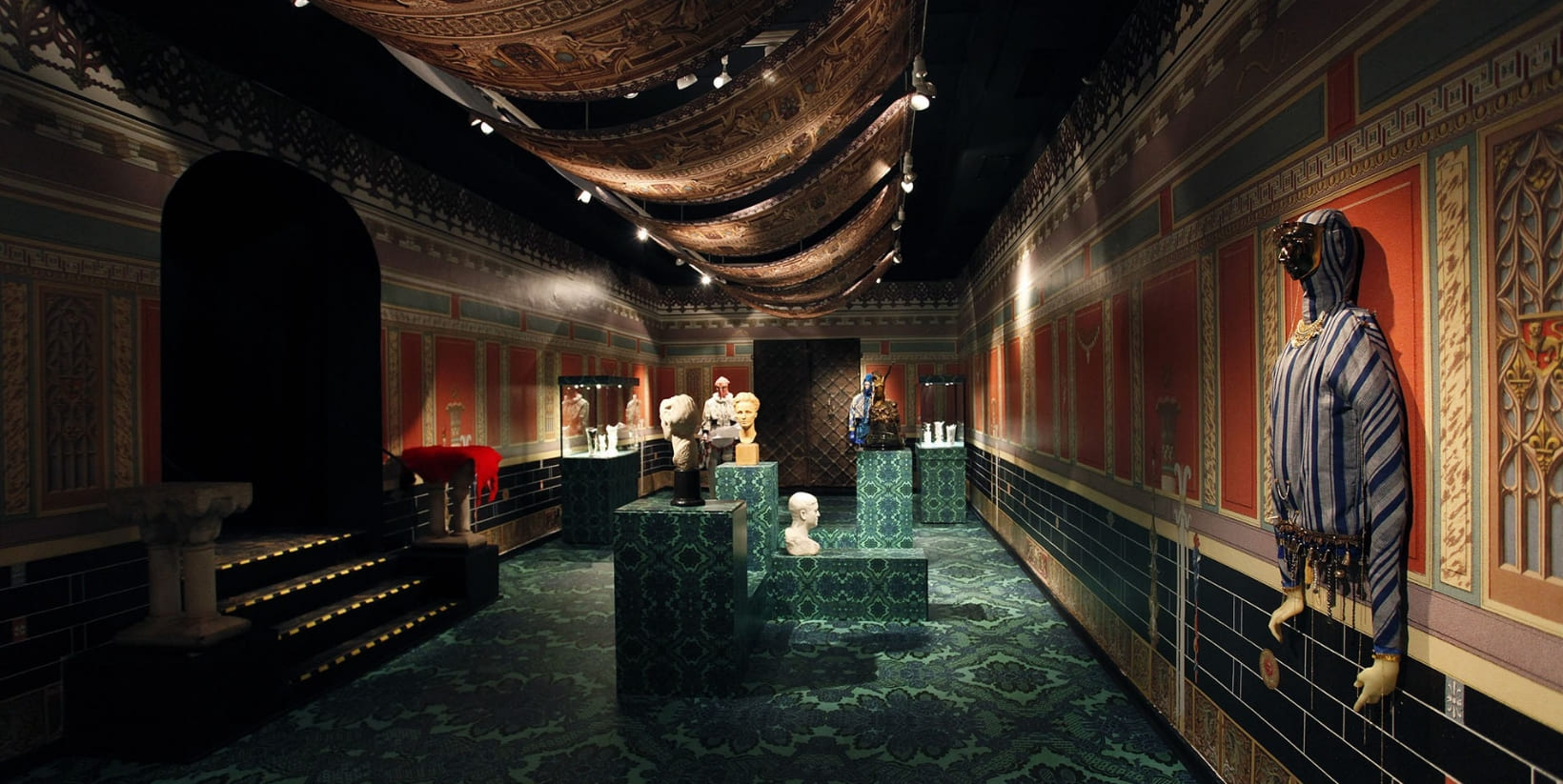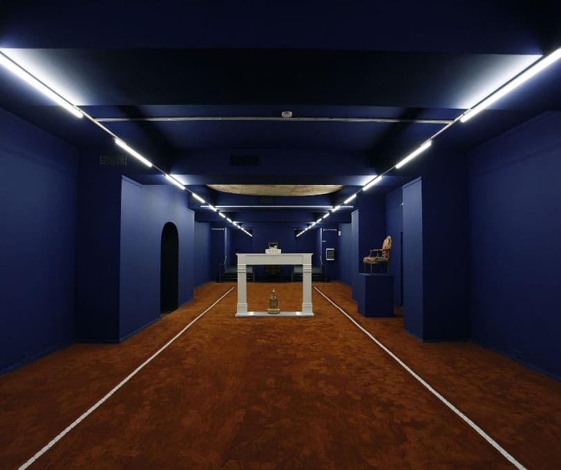 The basements of the aristocratic and elegant Errázuriz Palace became a tennis court, the Romanesque chapel was transformed into a multicolored universe of eclectic costumes, and the marble sculptures were ‘desecrated’ with proletarian golden-glazed ceramic tools resting on blue velvet pedestals.